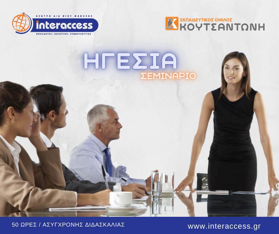 Το σεμινάριο υλοποιείται από την Interaccess, το ΚΔΒΜ του εκπαιδευτικού ομίλου Κουτσαντώνη. Ο γενικός σκοπός του σεμιναρίου, είναι το να οδηγήσει τους επιμορφούμενους στην απόκτηση των απαραίτητων θεωρητικών γνώσεων, προκειμένου να κατανοήσουν την φύση της ηγεσίας. Παράλληλα, αναλύονται κάποια βασικά μοντέλα άσκησης ηγεσίας, τα οποία αποτελούν την βάση για την υιοθέτηση της κατάλληλης ηγετικής συμπεριφοράς. Τέλος, παρουσιάζεται ένα ατομικό σχέδιο ανάπτυξης ηγετικών ικανοτήτων και συμπεριφορών.